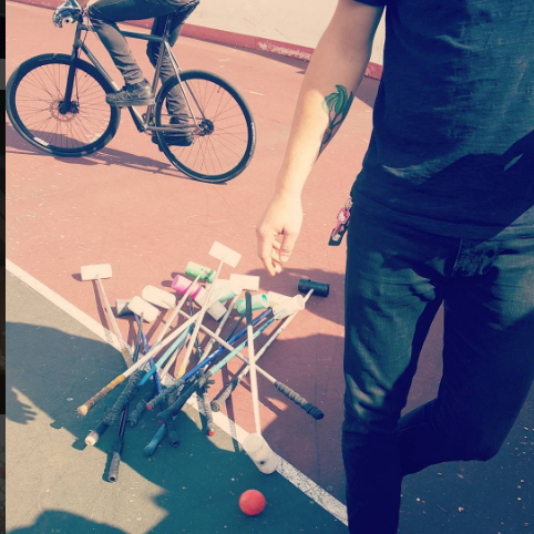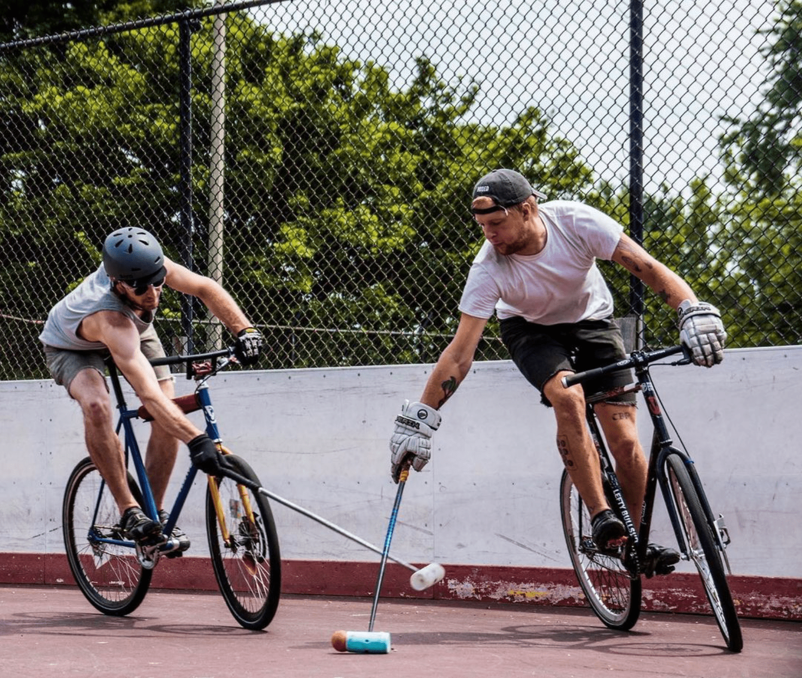 Hardcourt bike polo traces its roots back to Seattle in the late 1990's; a group of bored bike messengers hitting a street hockey ball around to kill time between jobs. It has since grown into a worldwide phenomenon, with clubs in almost every major city. Bike polo now has a highly structured rule-set, a national governing body, and fiercely competitive tournaments that take place all over the country. Despite its recent growth, it is still very much a fringe sport and is lauded for its inclusive, loving, tight knit community.
